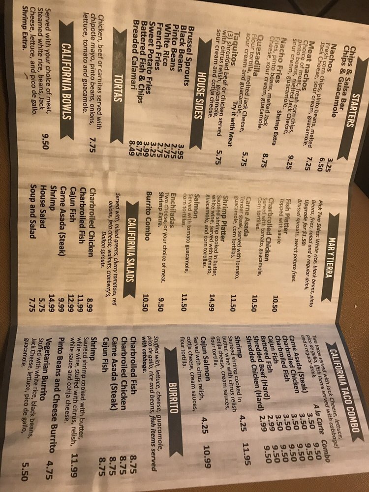 California Cocina Menu